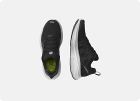 Salomon 独特のロッカー形状 Reverse Camber と 8mm のドロップによりスムーズな重心移動を確保。軽やかに地面を蹴って前に進めます。